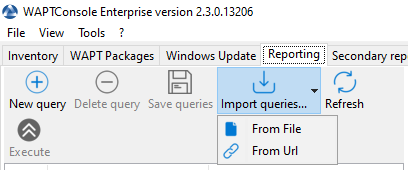 The Refresh button is used to reload queries saved on the WAPT Server, for example, if a colleague has just edited a new query.