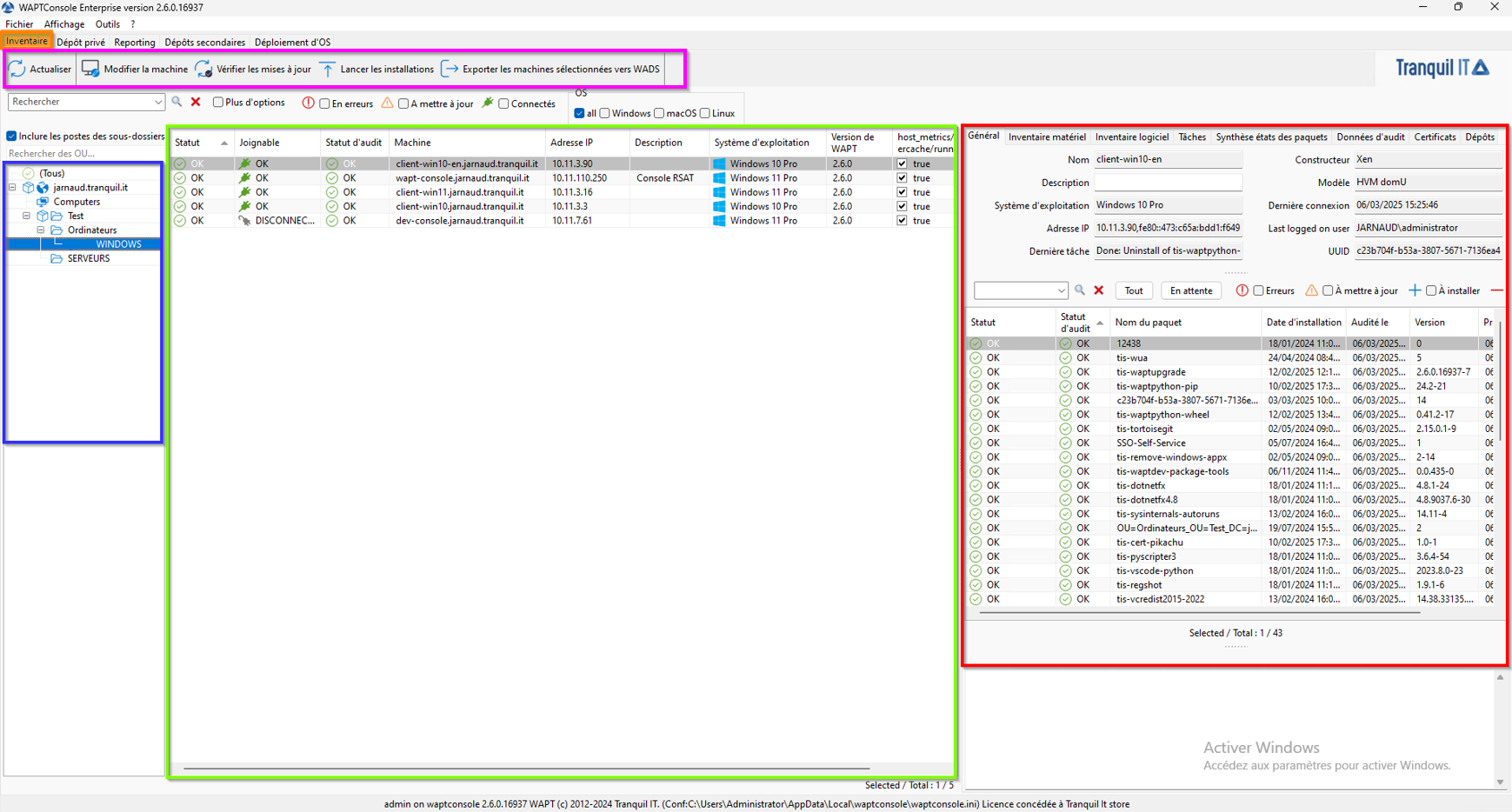Hardware inventory; basic inventory of the machine (OS, WAPT version, etc.).