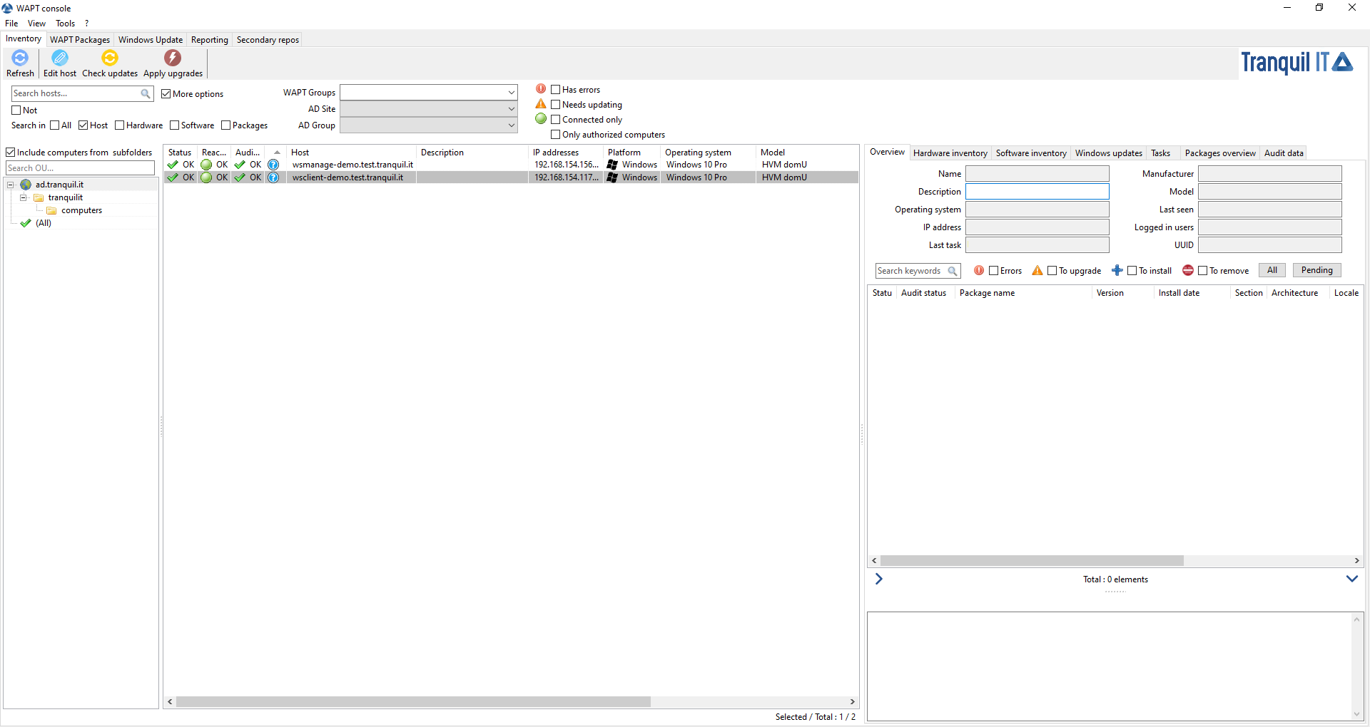 Sur votre poste de gestion, les agents sont affichés dans la console WAPT.
